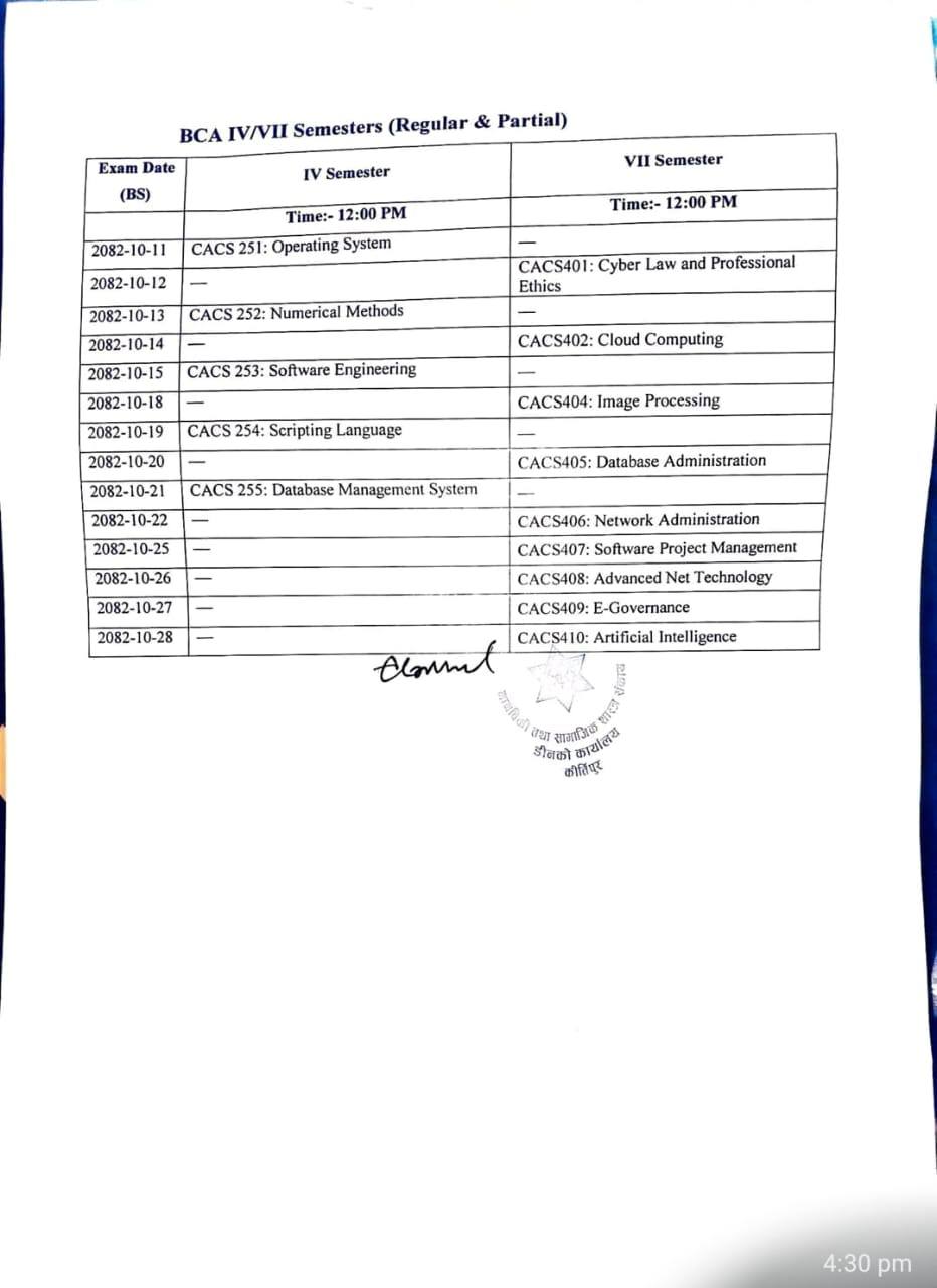 BCA IV & VII Sem First Term Exam Schedule 2082-06